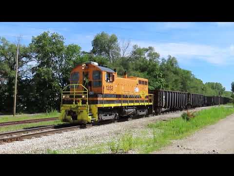 CAPTION: The Tazewell & Peoria Railroad's "Industry 3" job rolls by Krause Ave./S. Darst Street in Peoria, Illinois late-morning Monday, July 1, 2024. TZPR 1352 has 30 cars for Kickapoo Yard, including 12 scrap metal loads, 16 coiled wire rod empties and two molten petroleum asphalt loads.