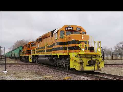 CAPTION: A Toledo, Peoria & Western Railway eastbound freight, sometimes called "M-Train" or MEPEF (Manifest, E. Peoria IL to Effner IL), rolls through Washington, Illinois early afternoon Saturday, March 7, 2026. Later, it is shown at Secor and El Paso. The train grew in length after eight cars were pulled at Gridley and a dozen more at Meadows. Final scene shows the 32-car train crossing Union Pacific's Joliet Subdivision at Chenoa in mid-afternoon. IORY 3492 and TPW 5009 left East Peoria with a dozen cars.