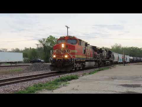 CAPTION: BNSF Railway M-PEIGAL (Manifest, Peoria IL to Galesburg IL) rolls by W. Farmington Road a few miles after leaving Peoria, Illinois early-evening Friday, April 17, 2026. BNSF 4462 and NS 9901 have 45 cars.
