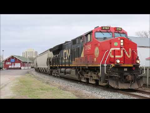 CAPTION: Canadian National Railway train L557 (Local, E. Peoria IL to Decatur IL) rolls along the Tazewell & Peoria Railroad as it enters Pekin, Illinois late-afternoon Tuesday, April 7, 2026. CN 3192 left East Peoria with 30 cars, and added three empties from Hanna Steel. Other scenes are at IC Junction in Pekin and at Hanna Drive. Final scene is at Fifth Street near South Pekin.
