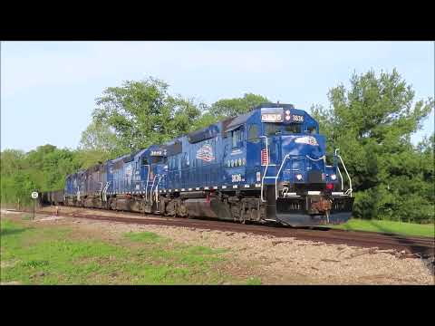 CAPTION: The Keokuk Junction Railway's "East Peoria turn" is shown on its westbound (return) leg at Cilco Lane south of Bartonville and at Mapleton early-evening Friday, April 24, 2026. LTEX 3836-3010-3837-6437 have 20 cars. Train reportedly had 12 cars when it left the Tazewell & Peoria Railroad at East Peoria, so the last eight (three tank cars, five boxcars) shown here were pulled from the Union Pacific/TP&W at Collier Yard in Bartonville.